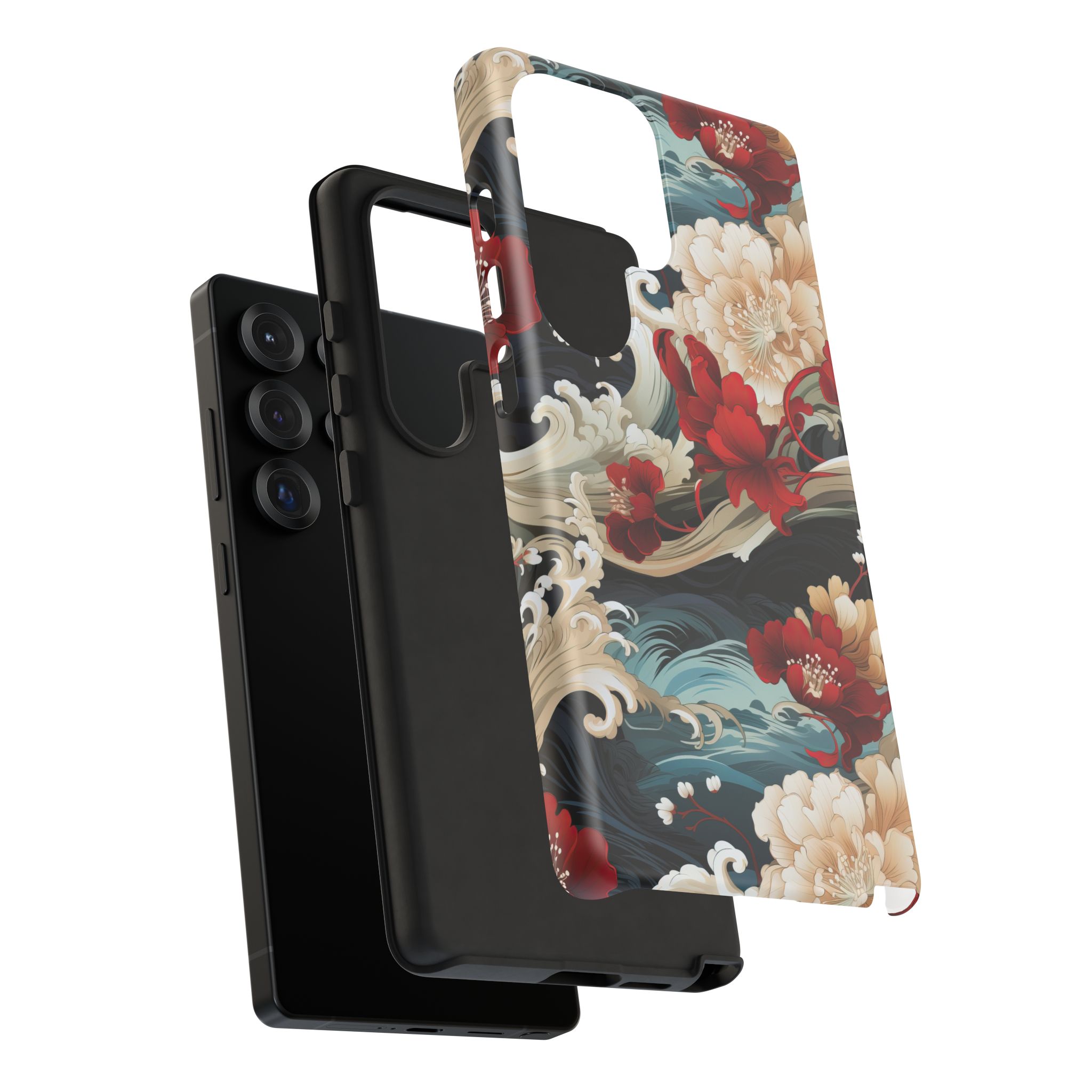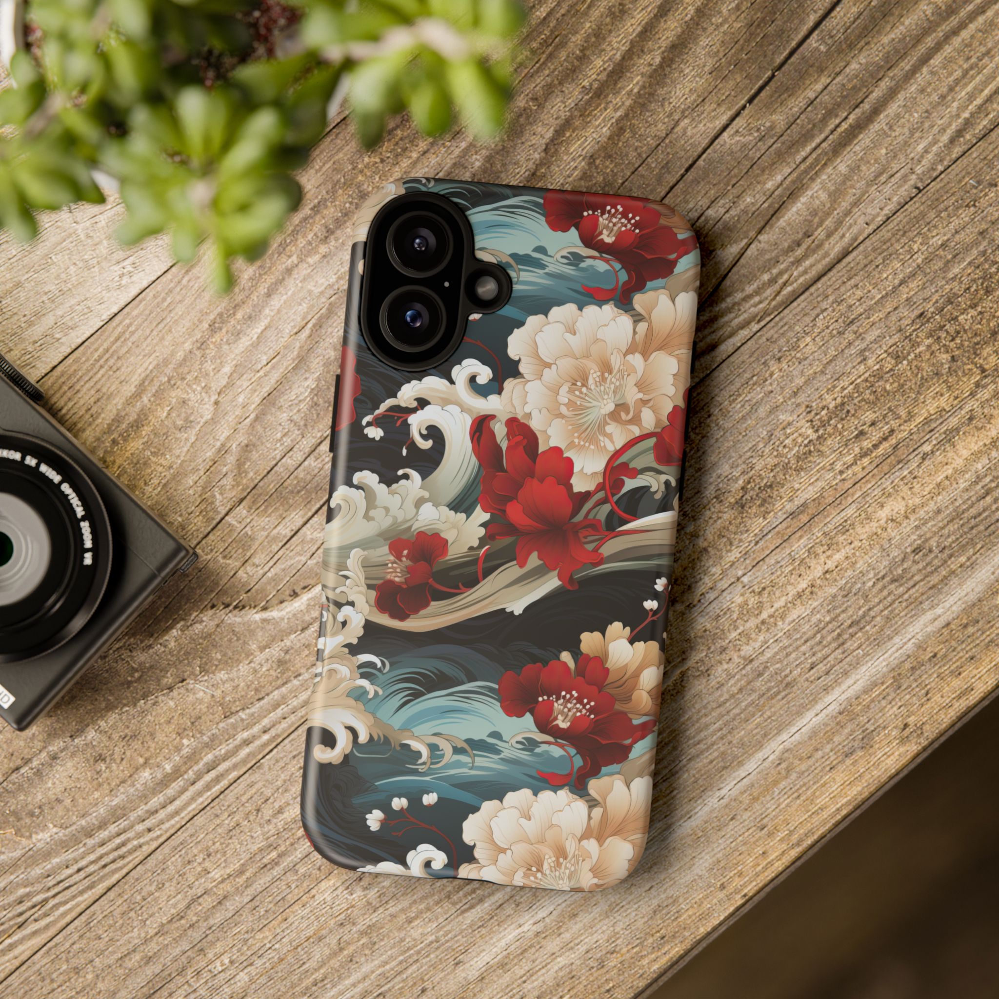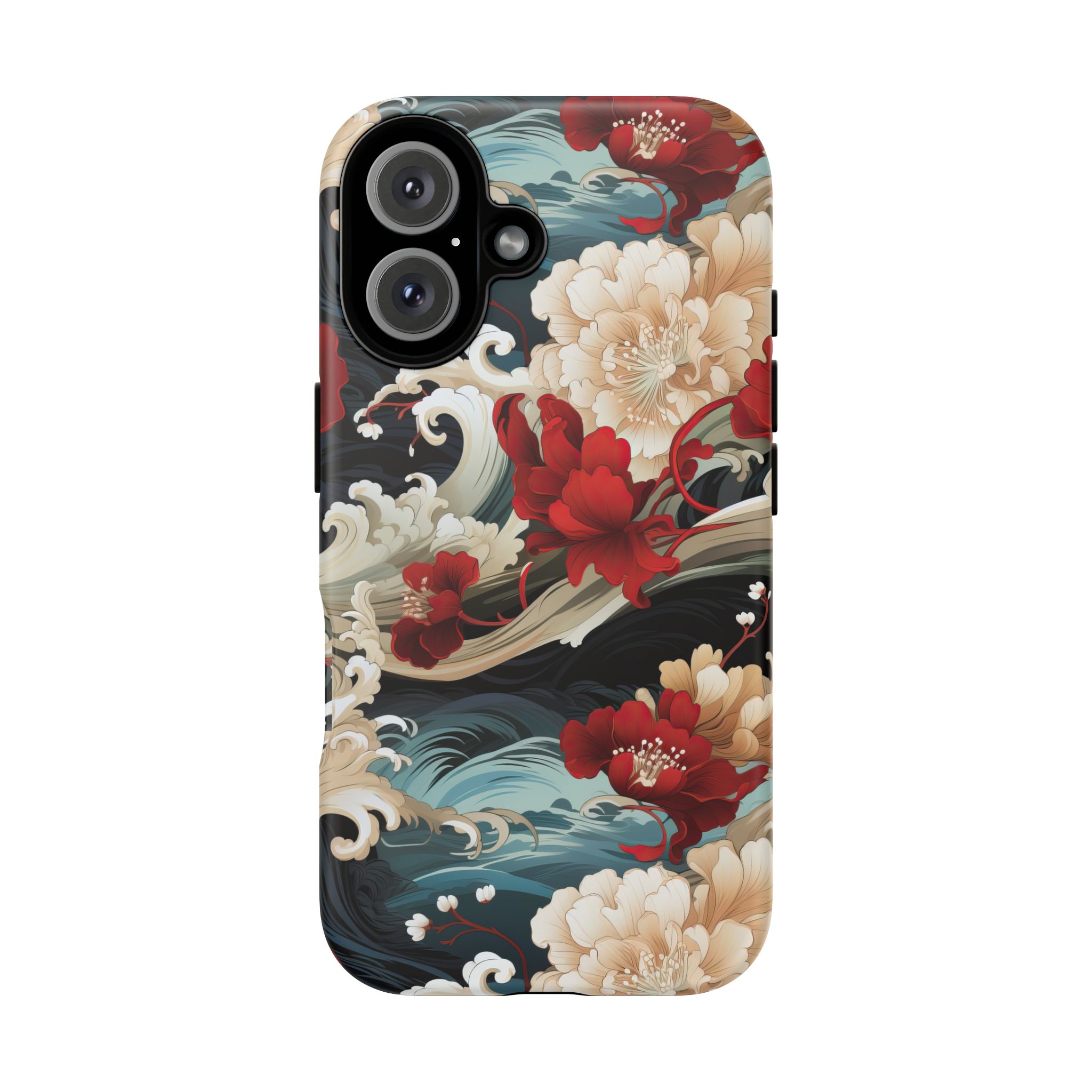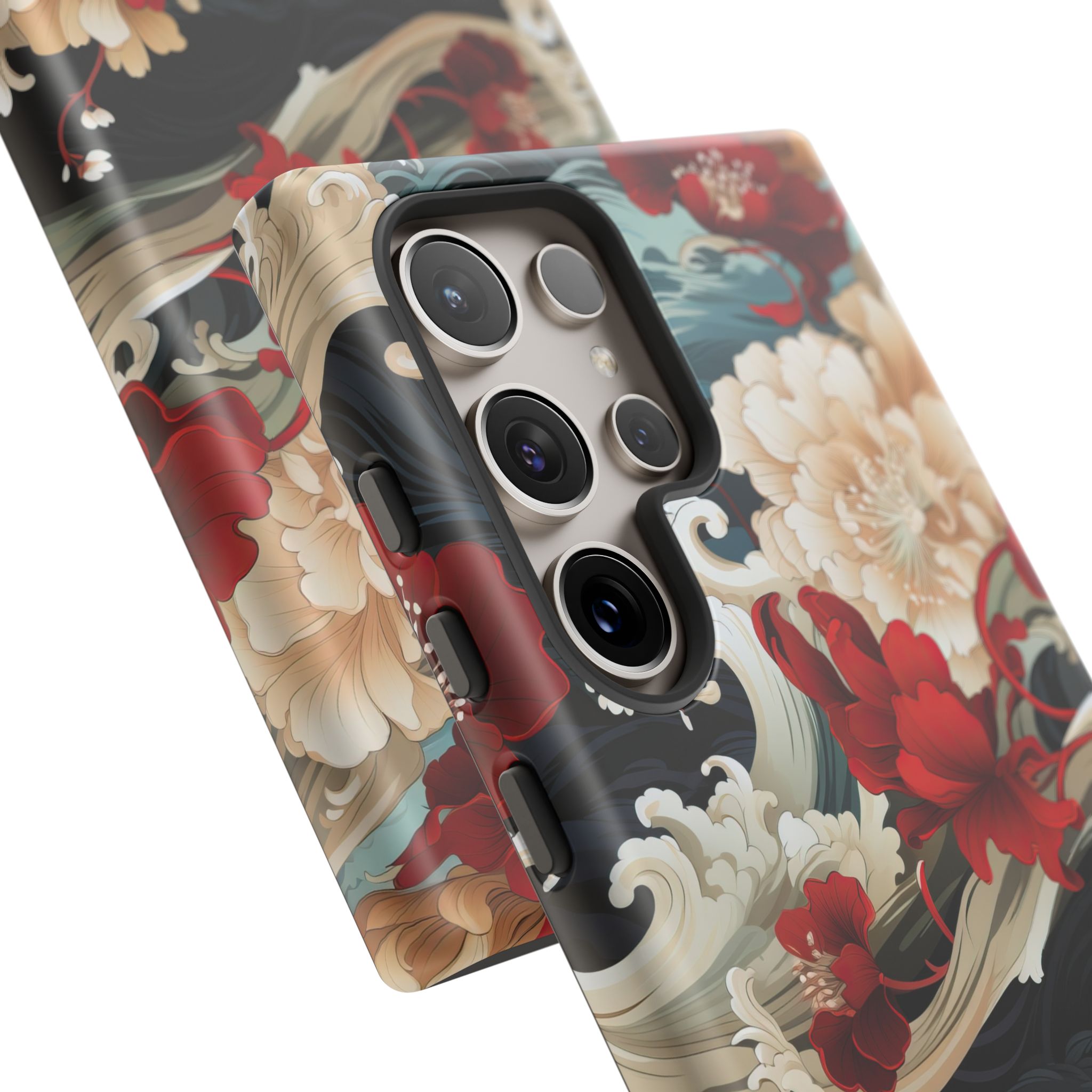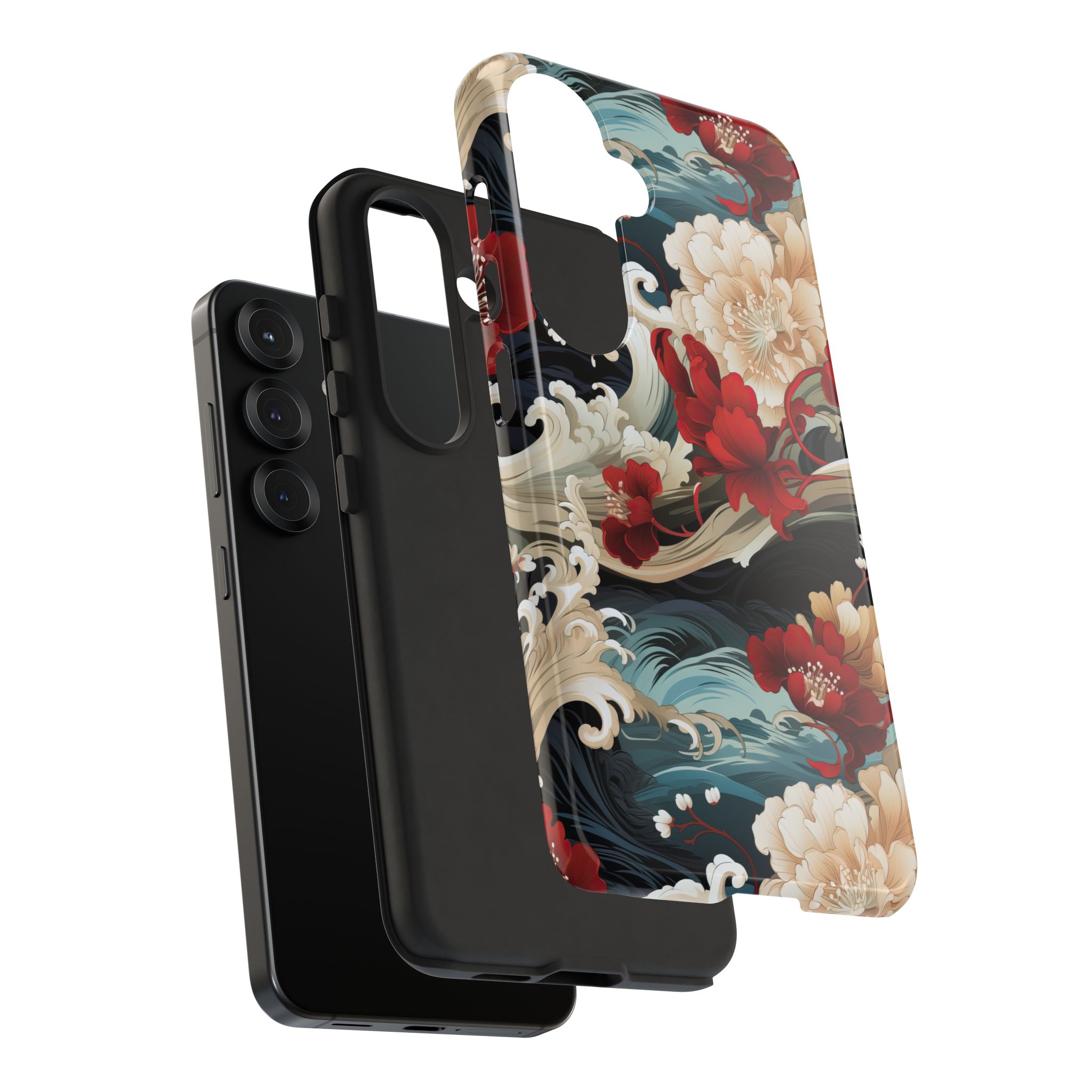 Floral Waves design phone case with excellent resistance to outdoor weathering and impact resistant materials for durability. Fits into the life of adults looking for stylish phone protection. Relevant for birthdays, holidays, or everyday use.