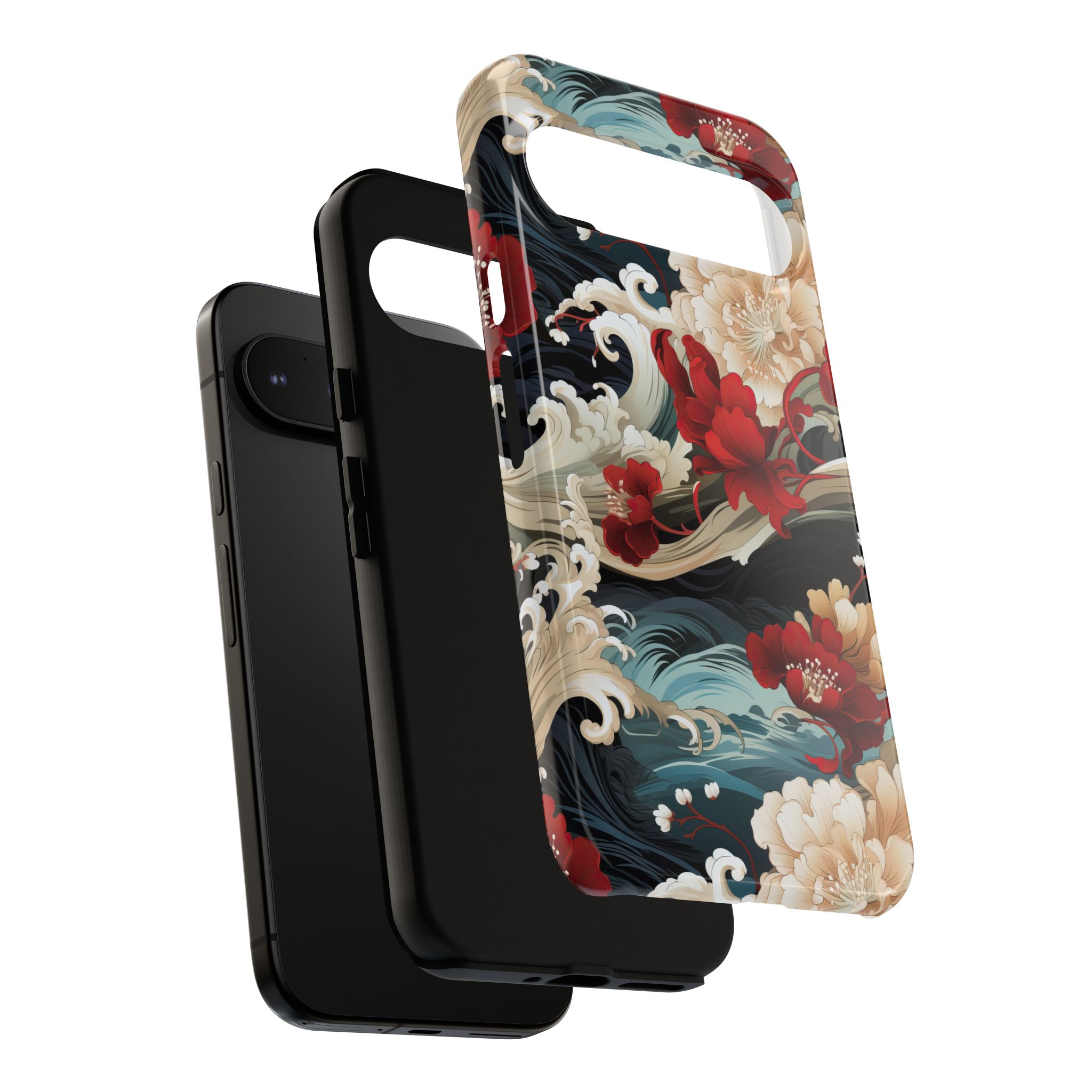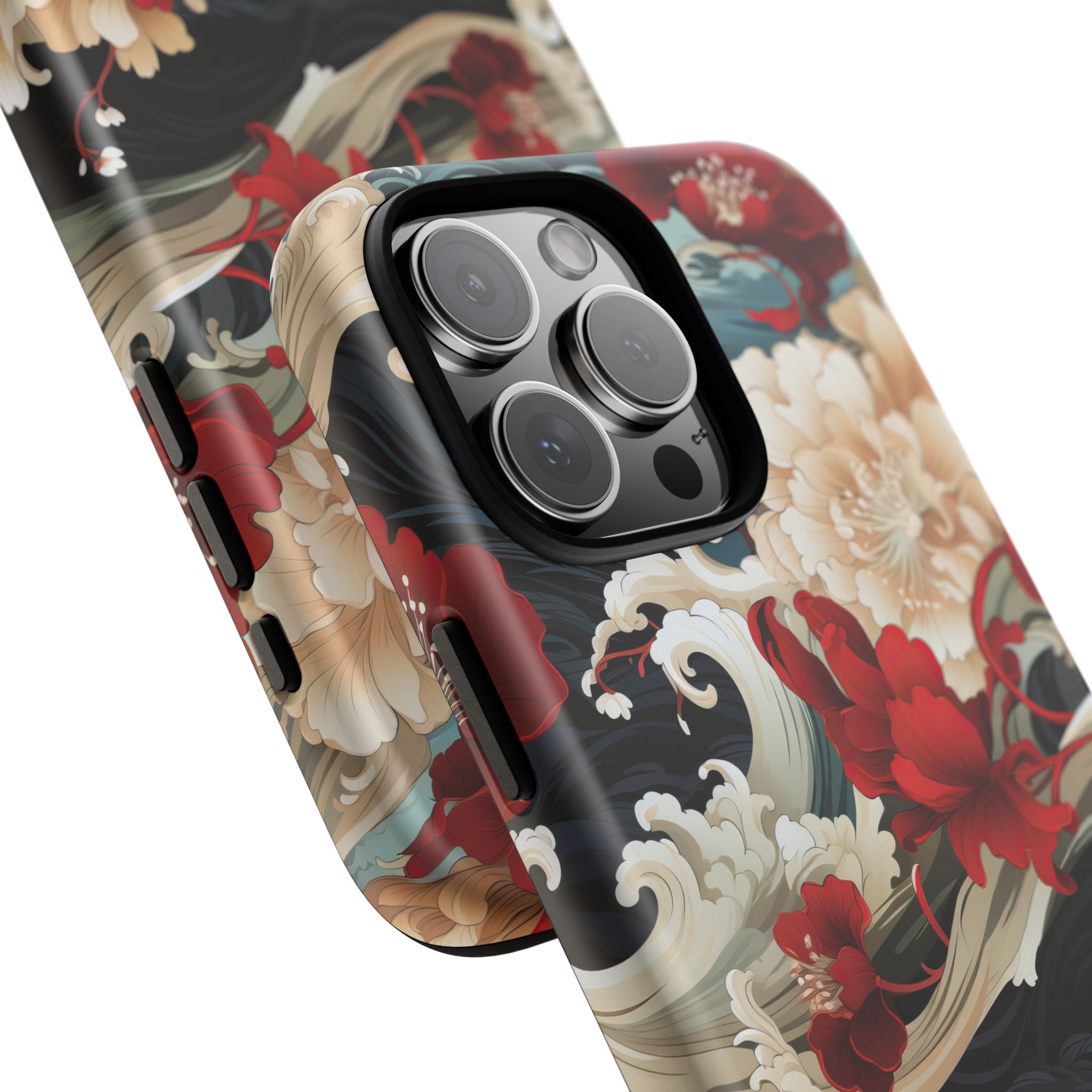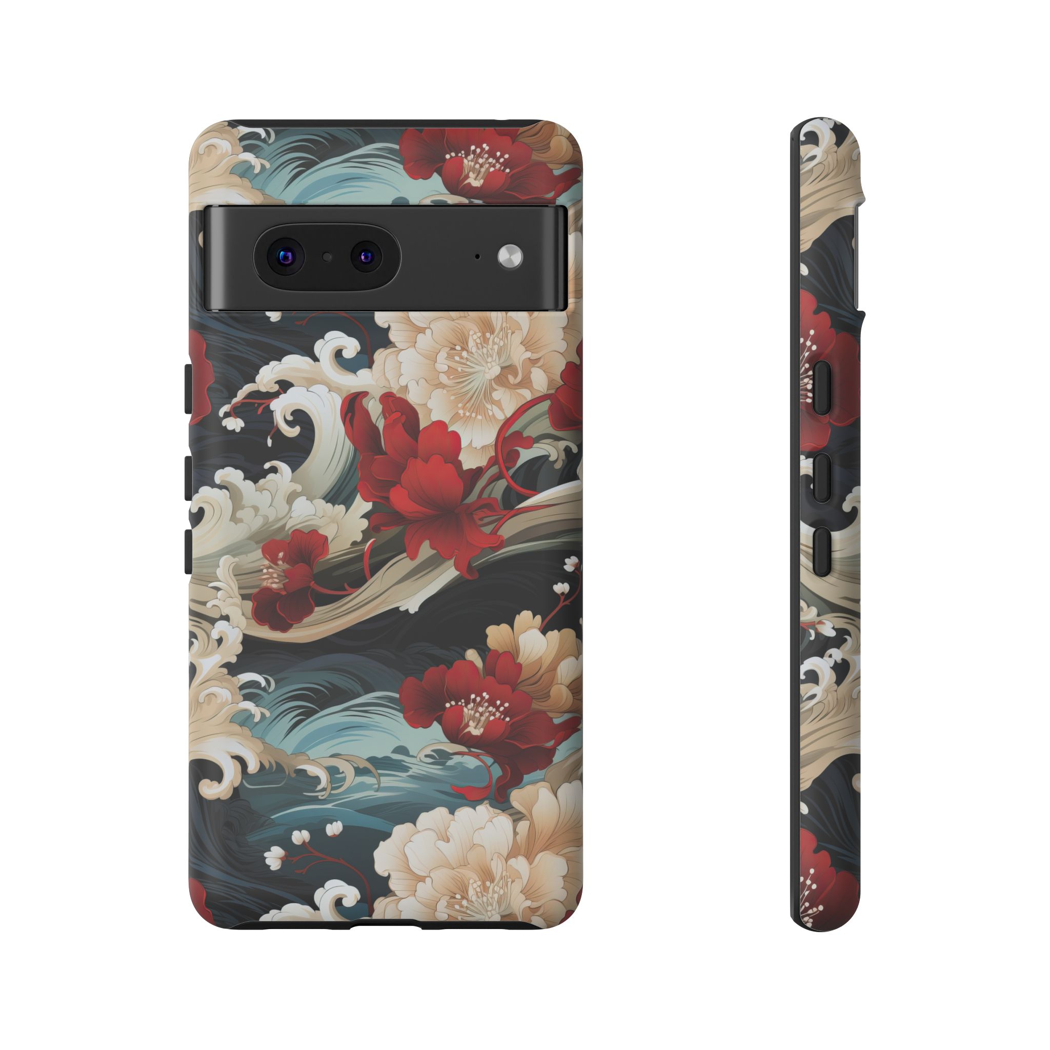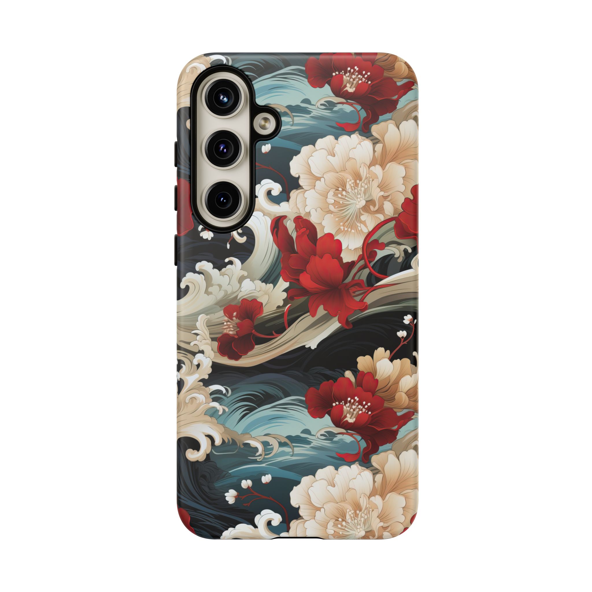 Floral Waves design phone case with excellent resistance to outdoor weathering and impact resistant materials for durability. Fits into the life of adults looking for stylish phone protection. Relevant for birthdays, holidays, or everyday use.