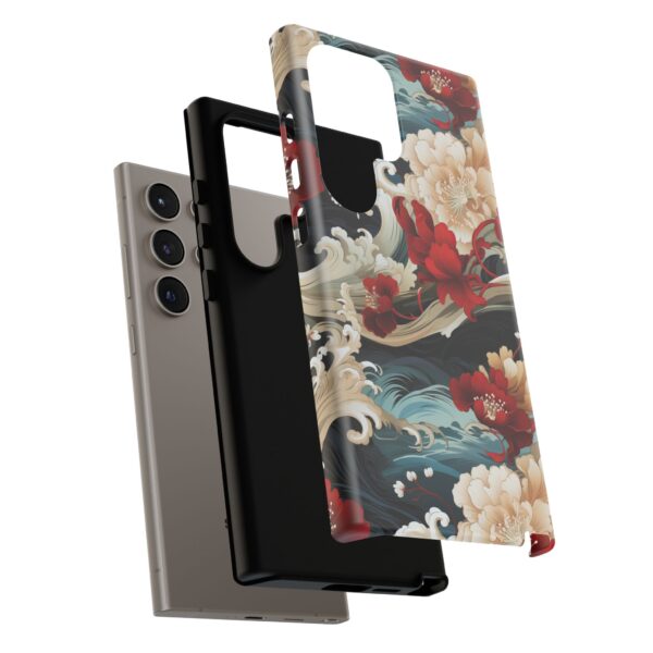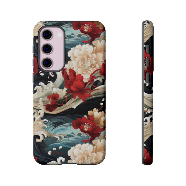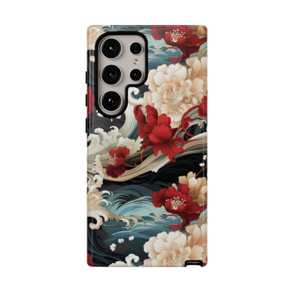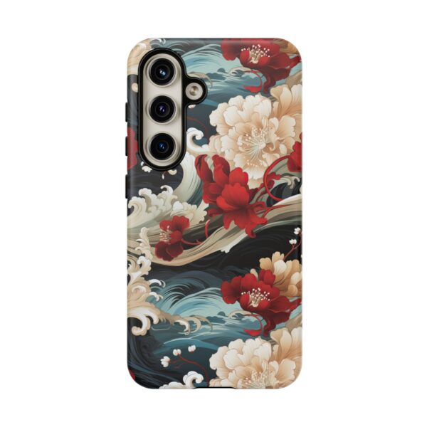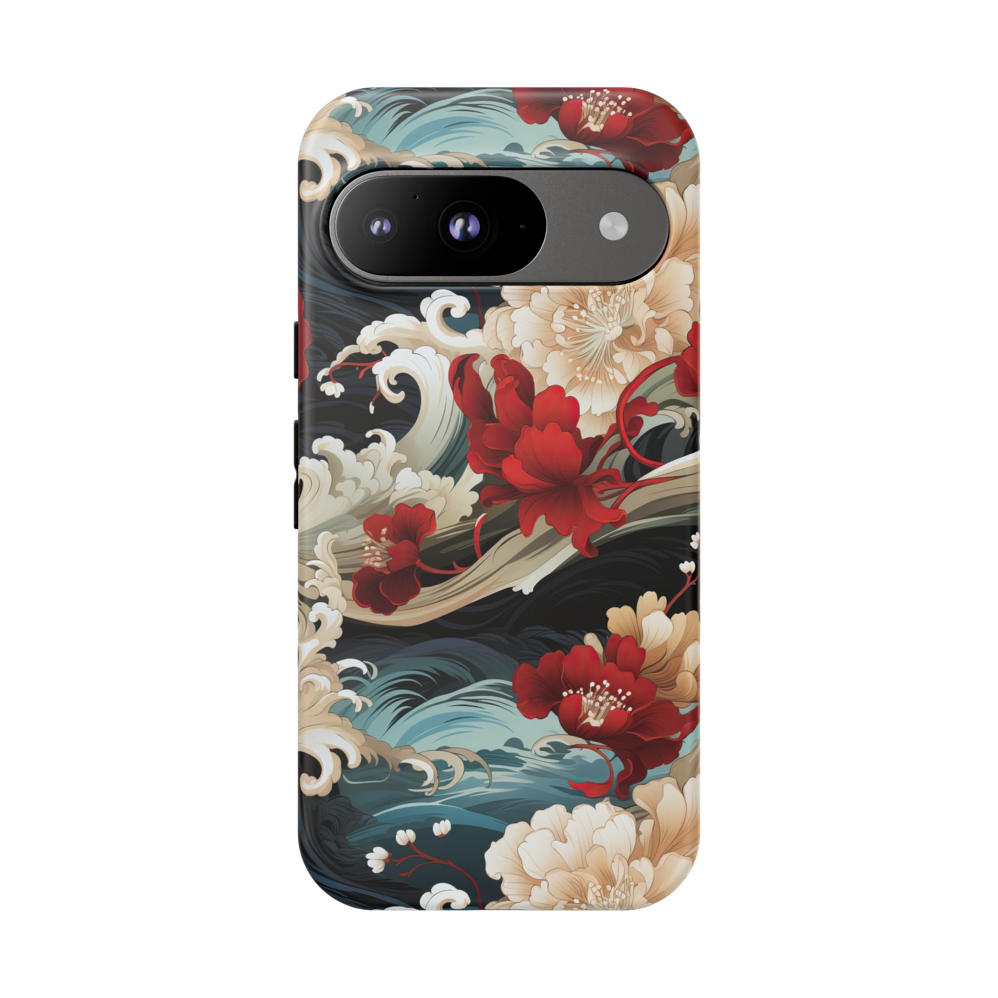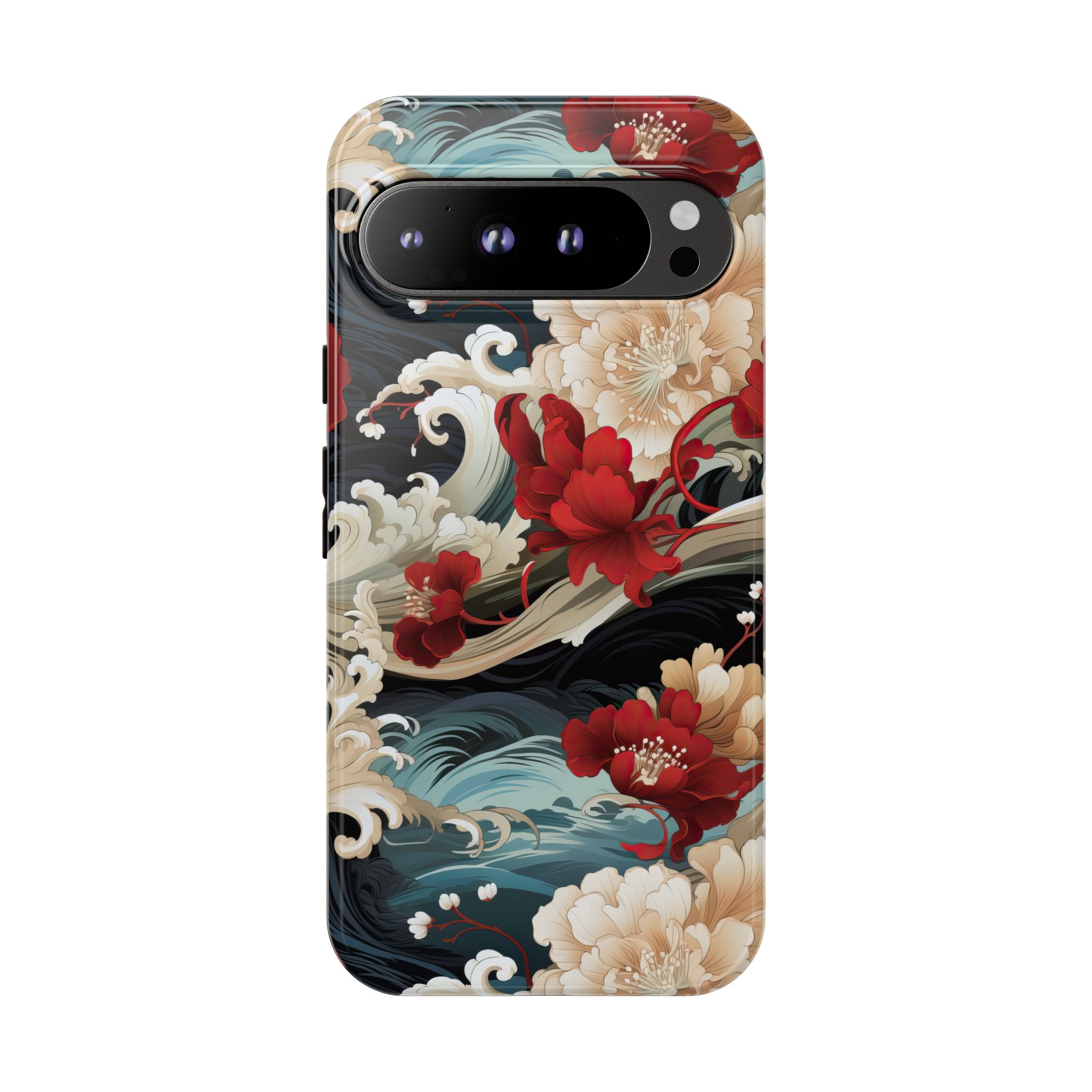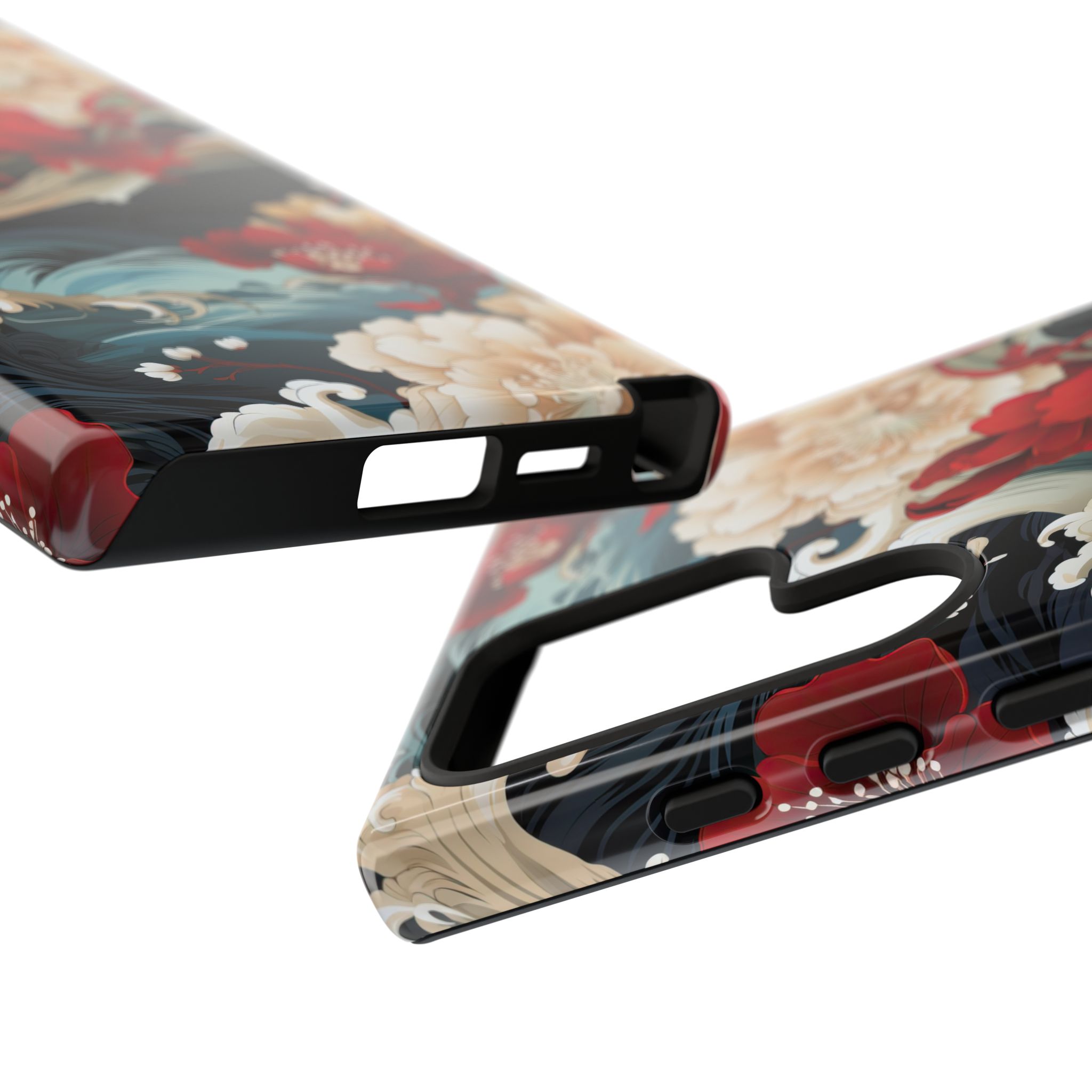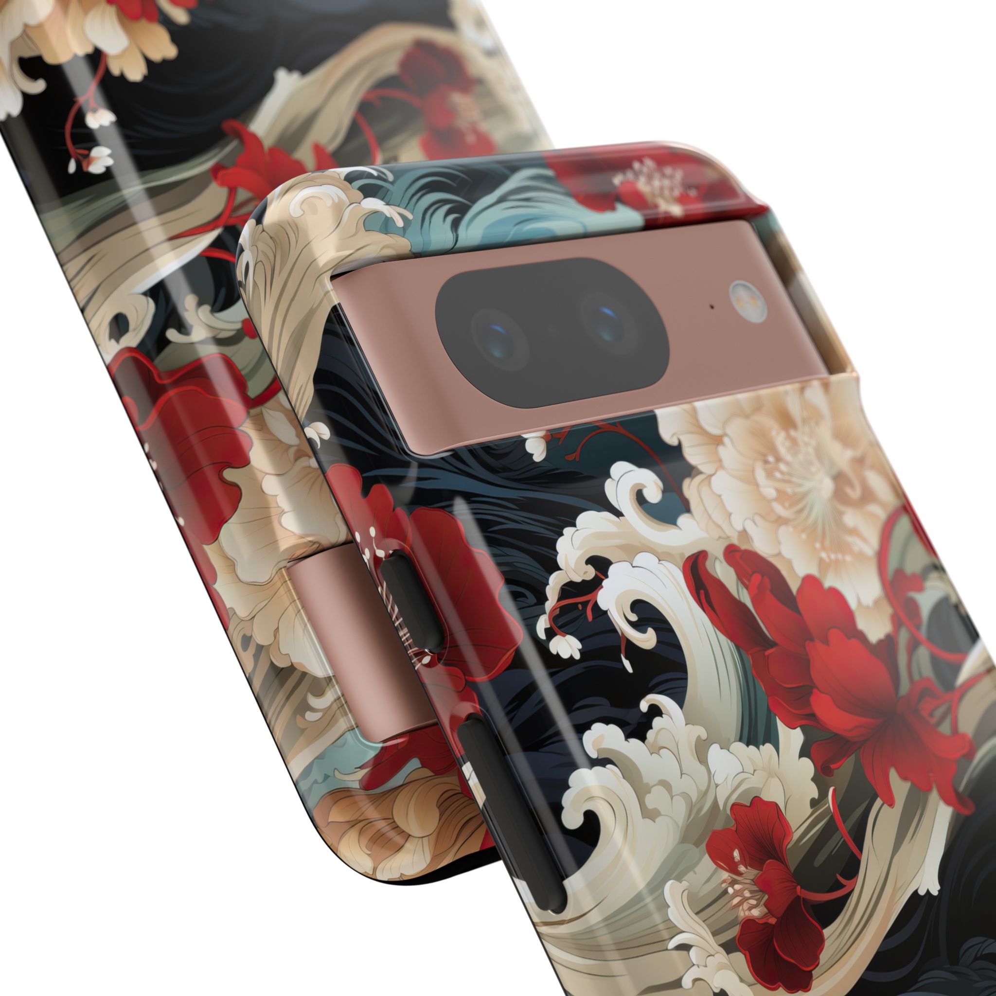 Floral Waves design phone case with excellent resistance to outdoor weathering and impact resistant materials for durability. Fits into the life of adults looking for stylish phone protection. Relevant for birthdays, holidays, or everyday use.