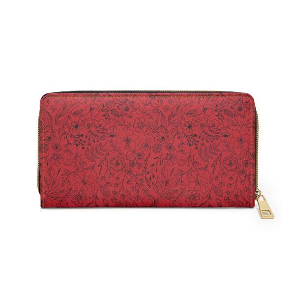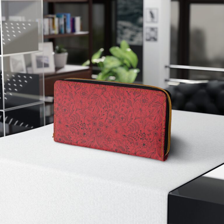 This Zipper Wallet features a seamless flower patch pattern with vibrant colors and a durable PU leather material. Perfect for those who love floral designs, this wallet is ideal for carrying cash, credit cards, coins, and a checkbook. The gold color thread stitching adds a touch of elegance to the design.