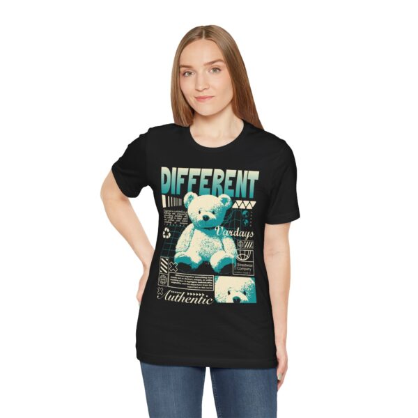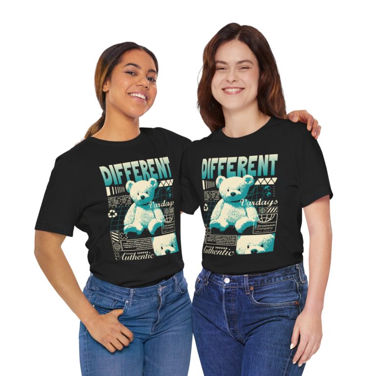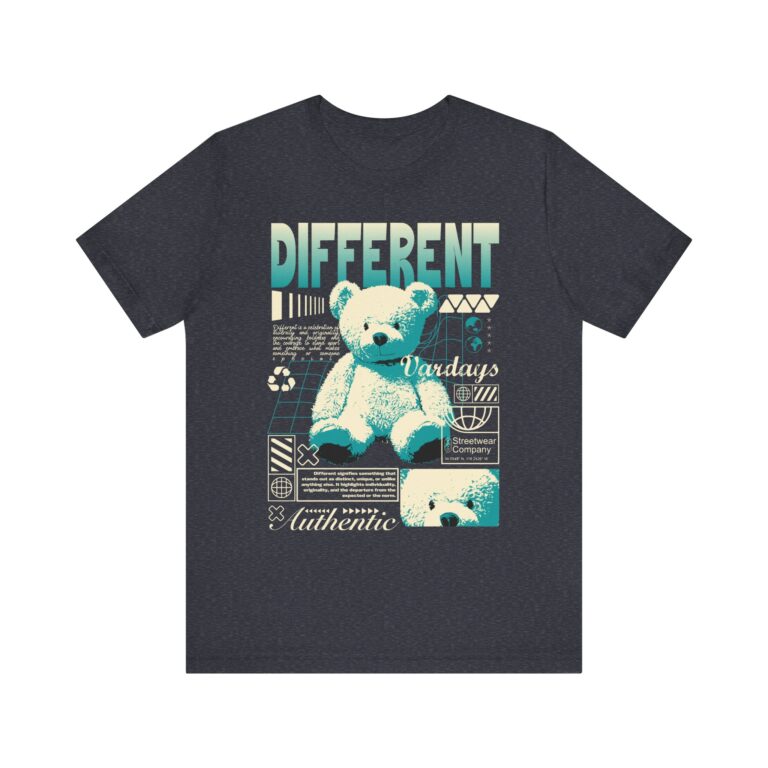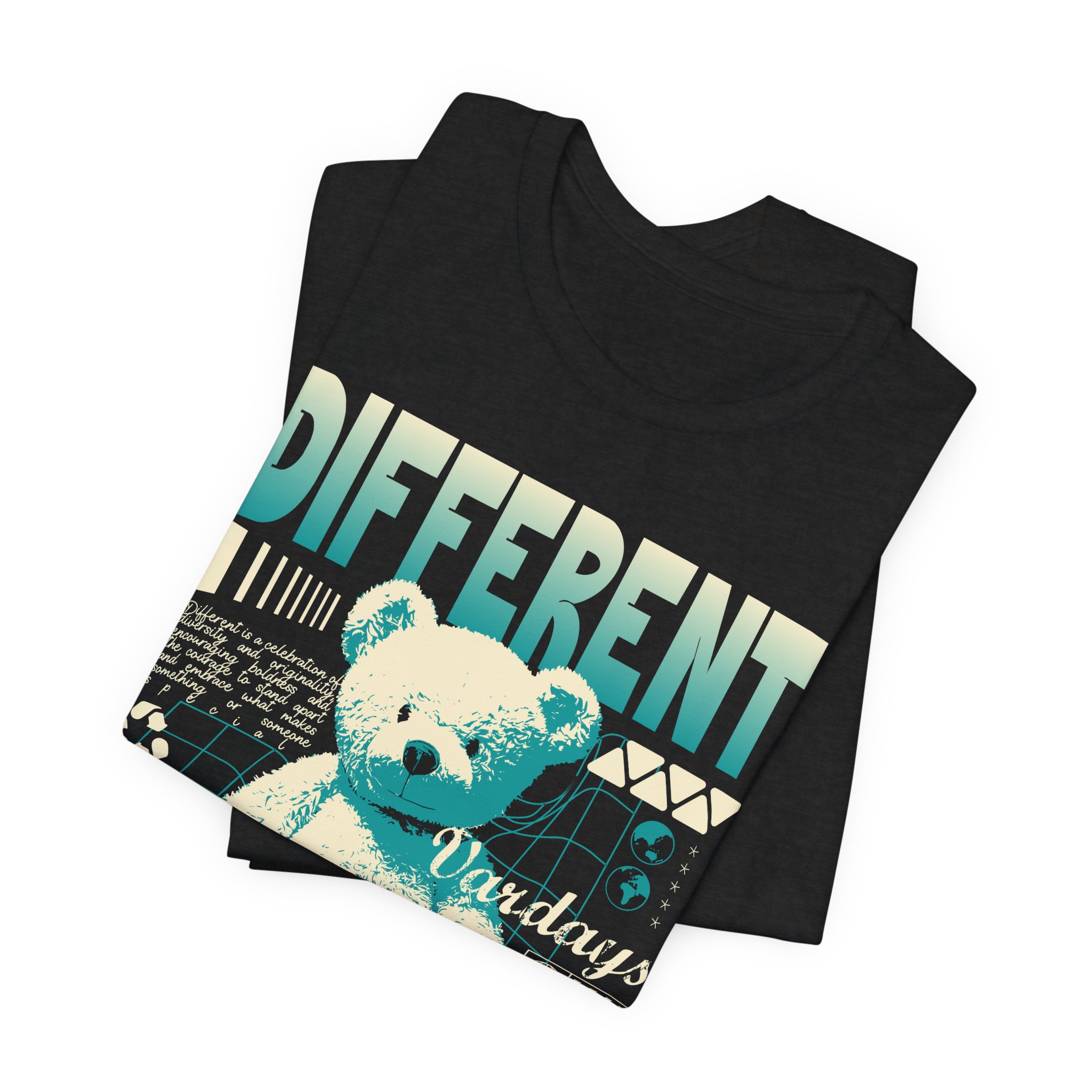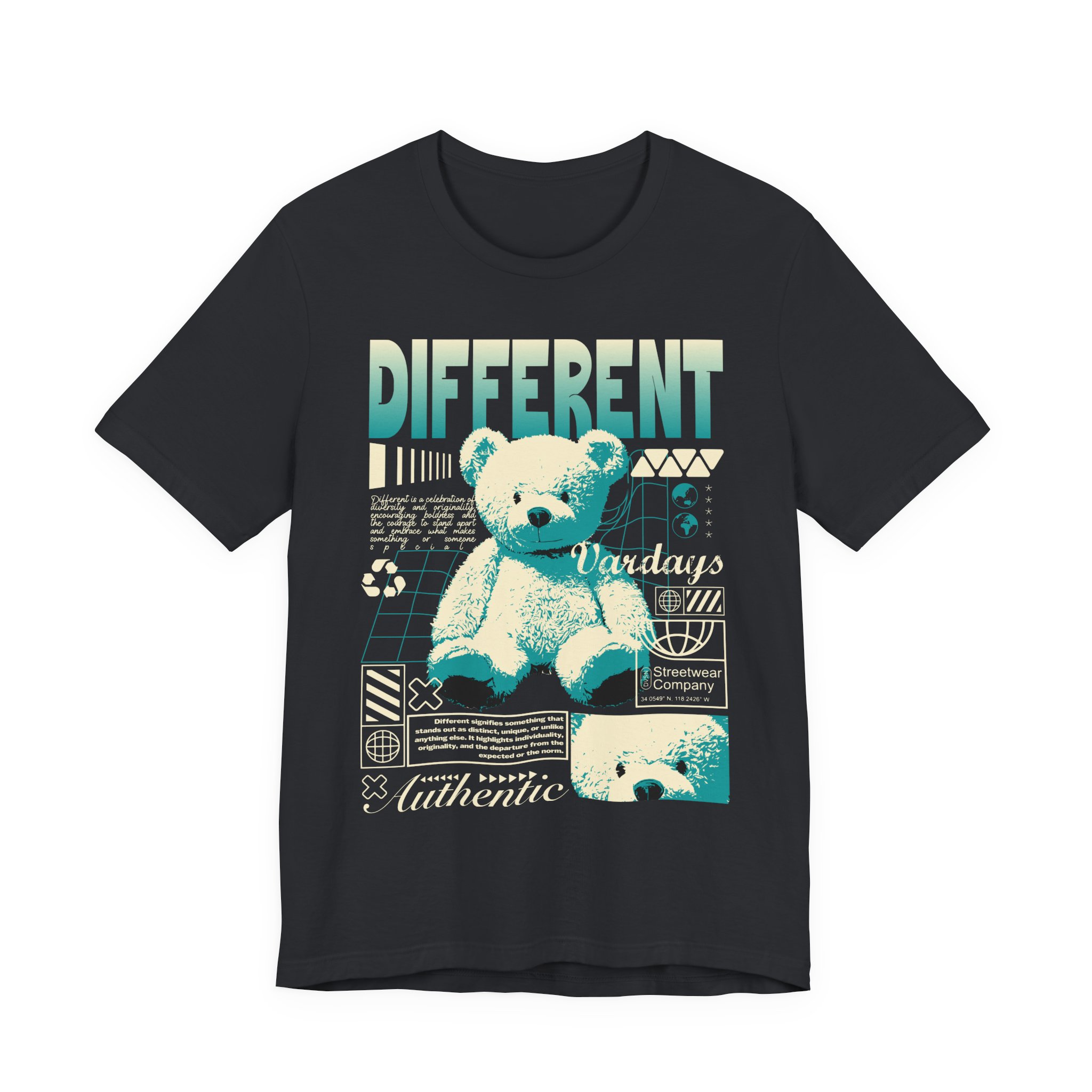 A trendy streetwear tee with the text ‘Different’ printed on it, giving off a cool and edgy vibe. Perfect for those who want to express their individuality and stand out from the crowd. Ideal for casual wear, street style, and everyday outfits. Relevant for events like casual Fridays, weekends, and social gatherings.