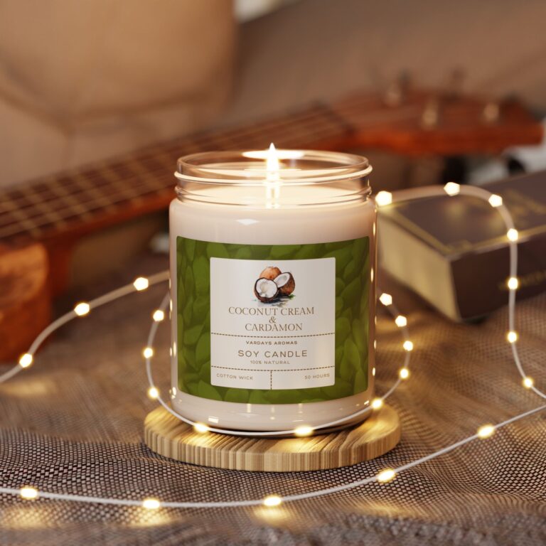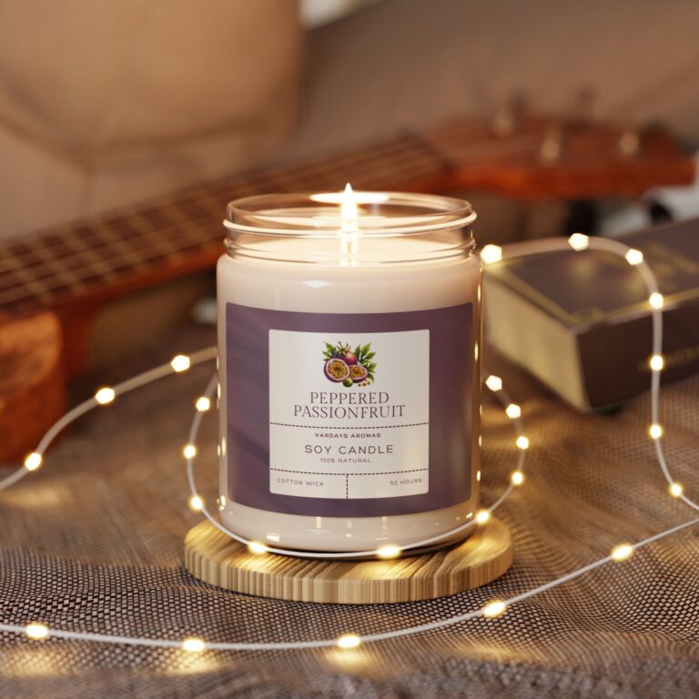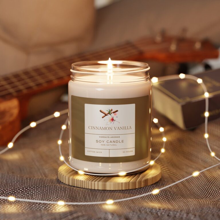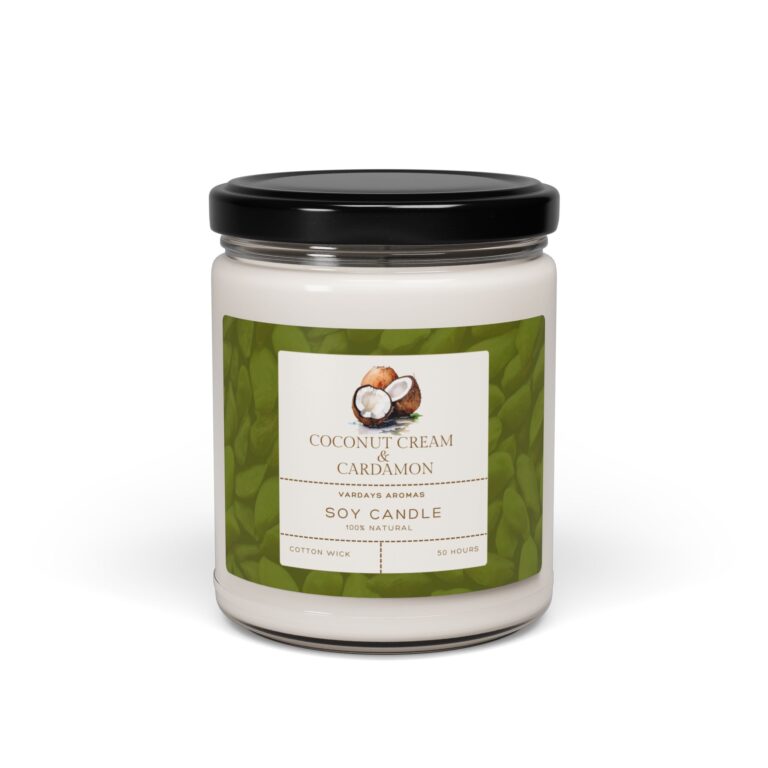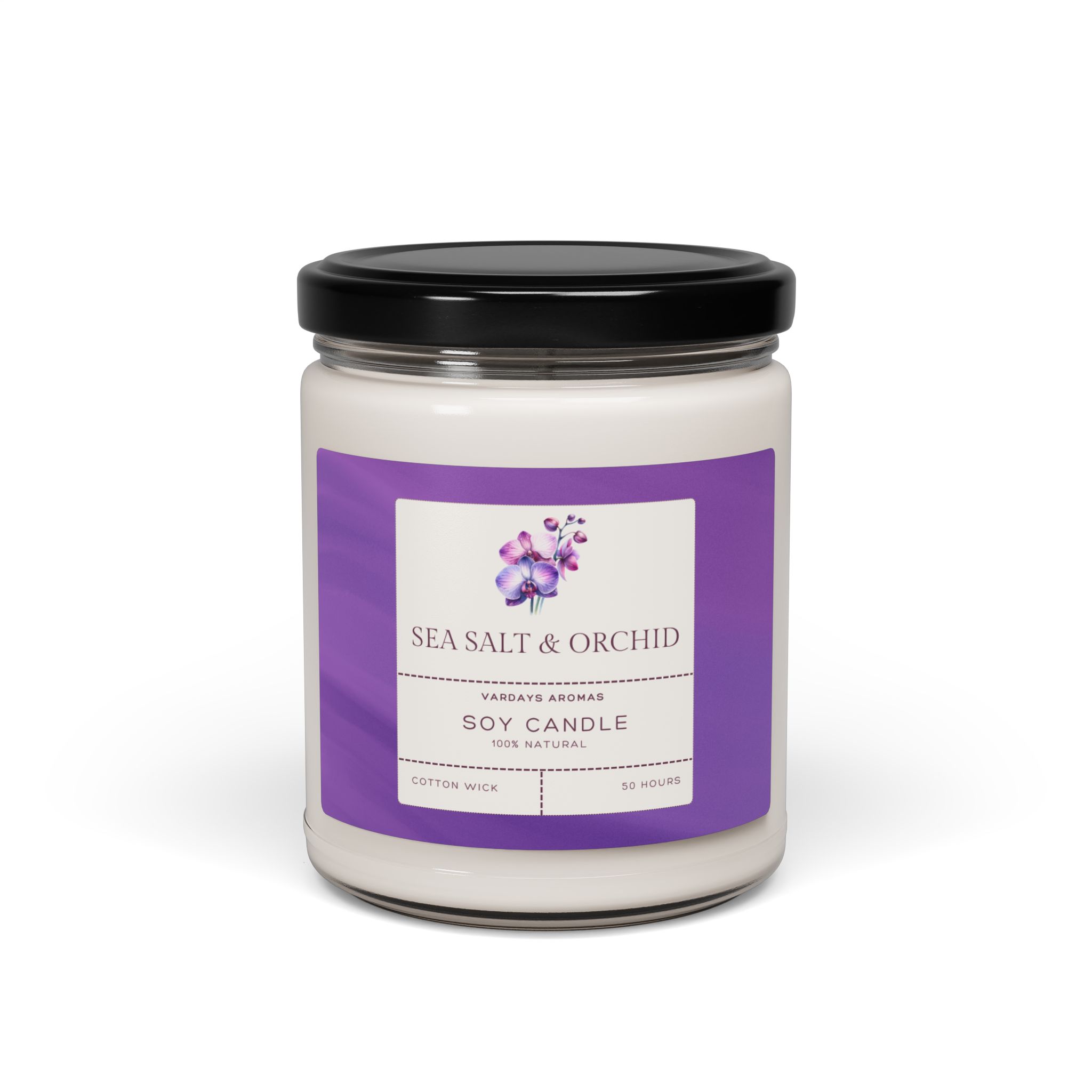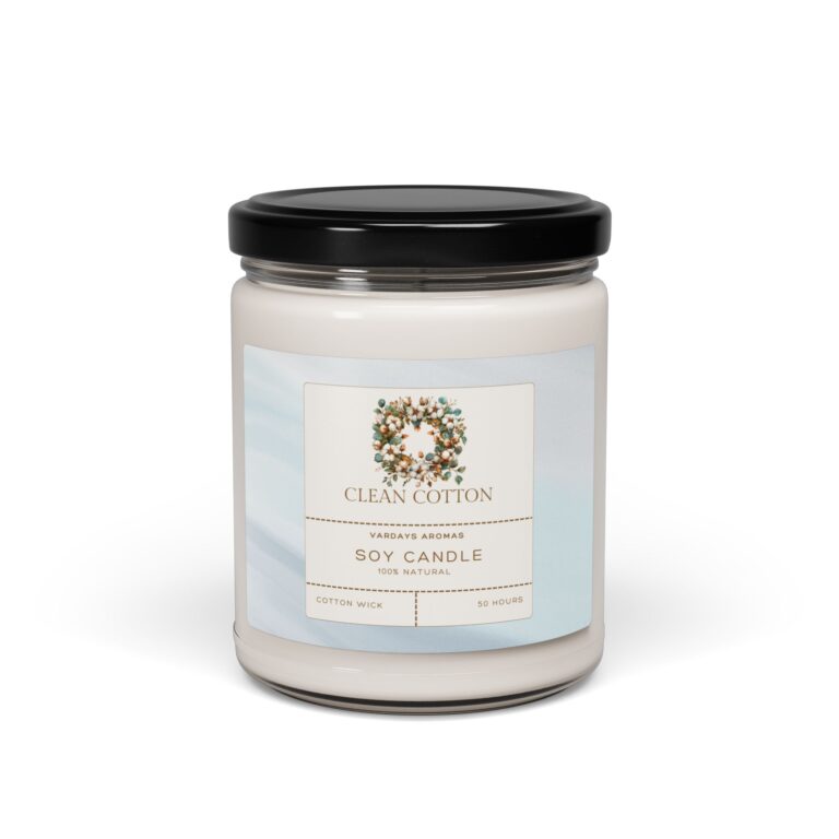 Packed with immersive aromas, these scented candles come in 9oz glass jars and are one size (2.8″ × 3.5″) (7.1cm × 8.8cm). Made with 100% natural soy wax blend, each candle features a 100% cotton wick and a permanent adhesive label where your custom designs can come alive.