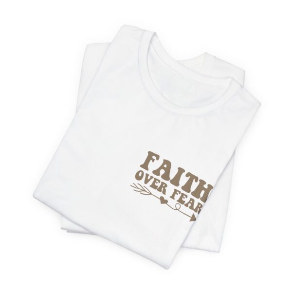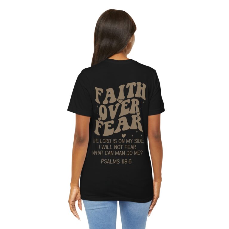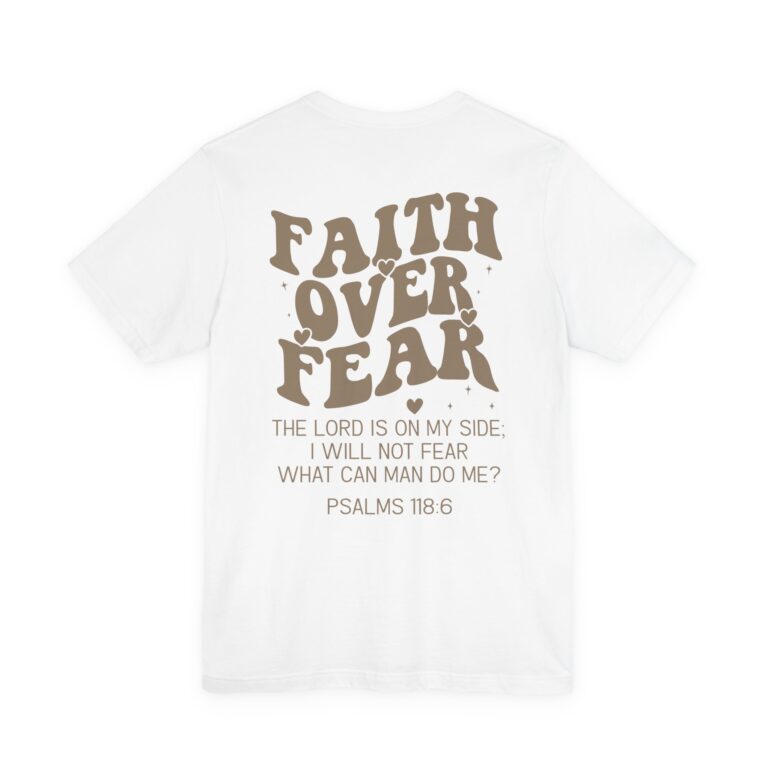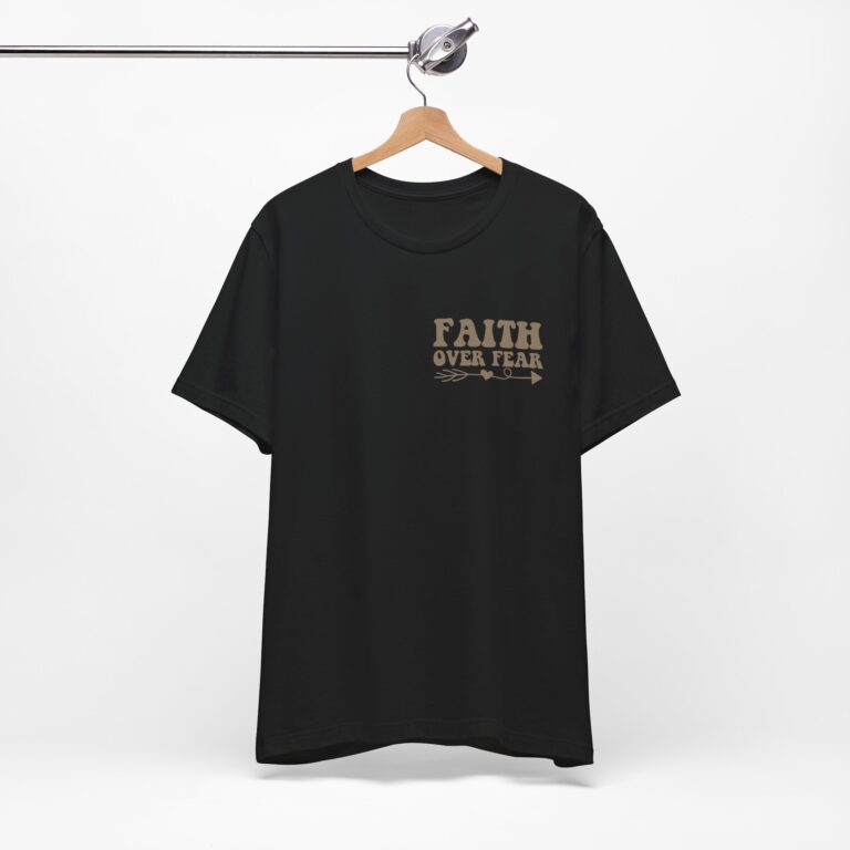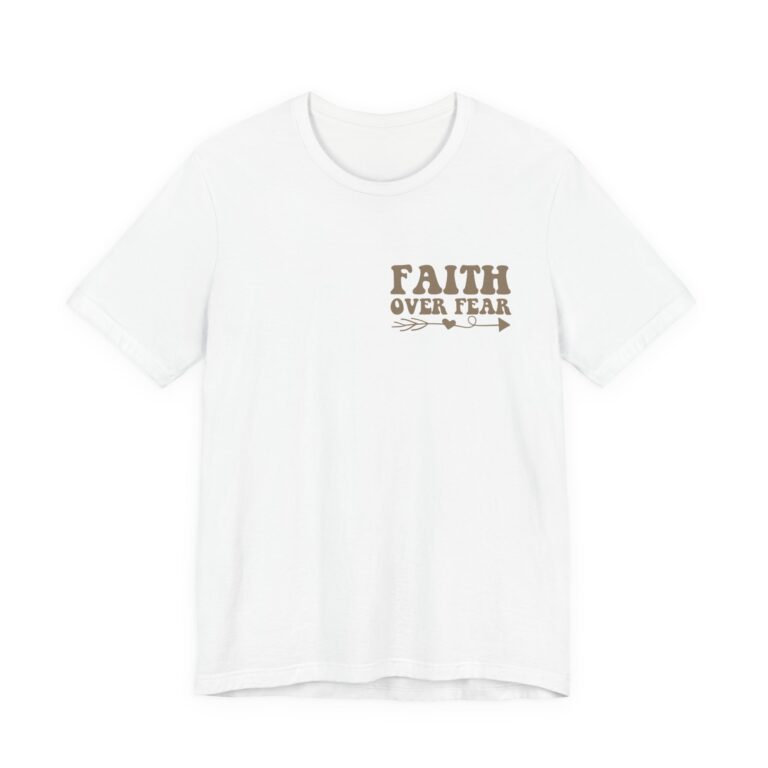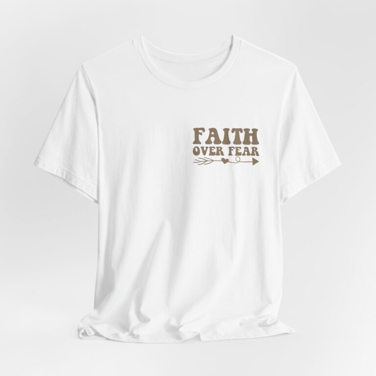 This Faith Over Fear T-Shirt is a motivational and inspirational top perfect for those seeking spiritual inspiration. The relaxed fit and comfortable fabric make it ideal for everyday wear or for gifting to someone who needs a positive message. Relevant for Christians, those seeking motivation, and those looking for a faith-based gift. Perfect for occasions such as birthdays, Christmas, Easter, Baptism, and other religious celebrations.