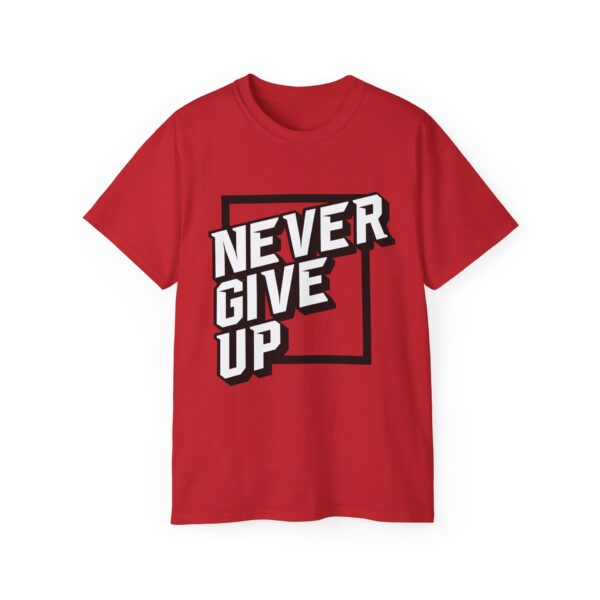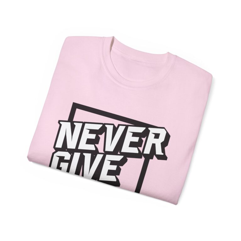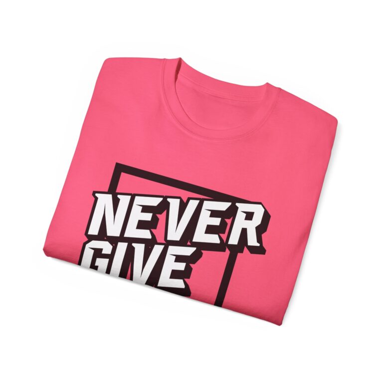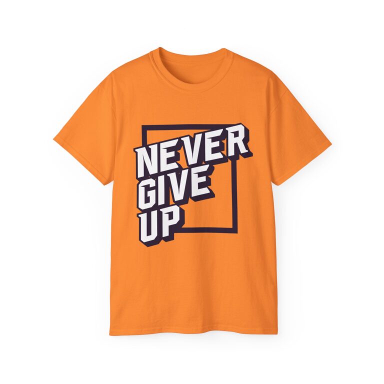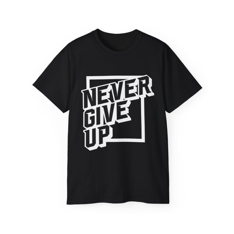 This T-Shirt features a motivational ‘Never Give up’ quote, providing a positive and uplifting vibe. It is perfect for individuals seeking daily inspiration and motivation. Ideal for casual wear or as a statement piece for special events or gatherings.