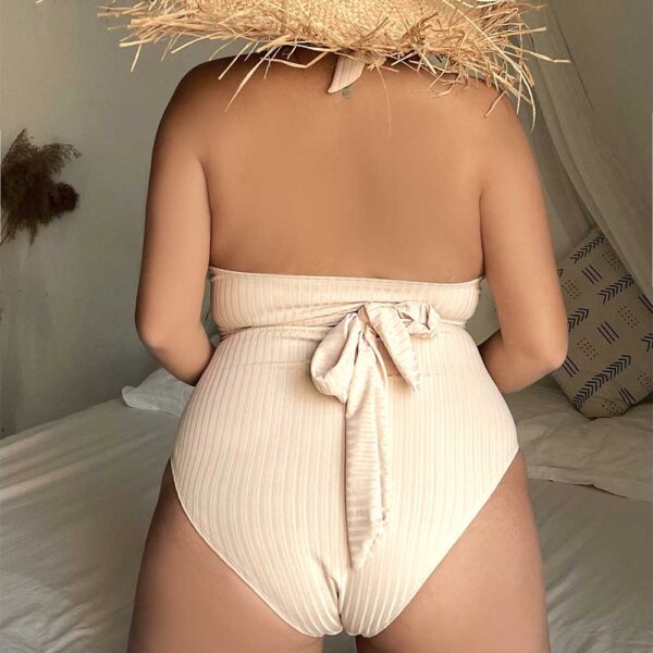 This sexy 2-piece swimsuit is made of polyester that is soft and skin-friendly, as a swimsuit, it’s fast-drying, flexible for all sizes. You can always adjust to your contour with strings.